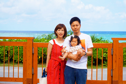 最終日はちゅら海。家族写真をパシャり(*^◯^*)