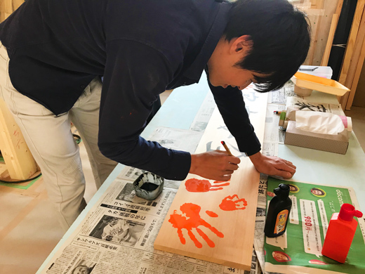 以前上棟を終えたお客様の手形式を行いました。