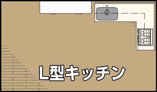 L型キッチンは、L型に作業スペースを広くとったスタイルです。