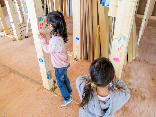 その間に一緒に柱にお絵かきをさせてもらいました(^^)
