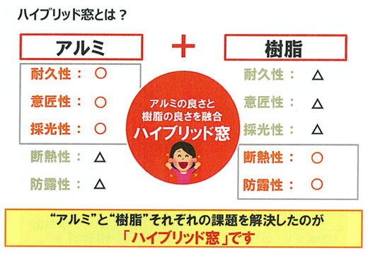 ハイブリットサッシ(アルミ樹脂複合窓)を選択していただけます!