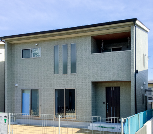グレーっぽい外壁の4号地のタイルは「アンティークグレー」という名前です。