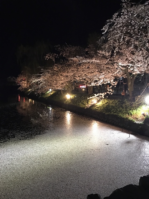 お城では夜桜の見学ができ、また
