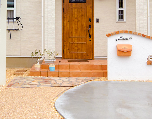 特に玄関ポーチのテラコッタ調のタイルは僕のお気に入りです。