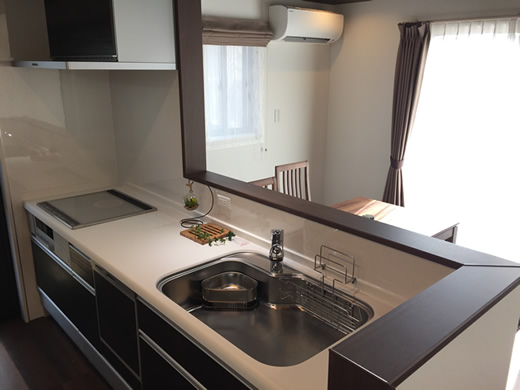 ピカピカのキッチン!ちなみに今CMでおなじみの流レールシンクですね。