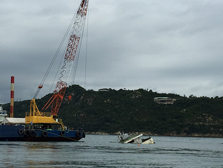 この日に沈没船をクレーン船が撤去してました。すごい!