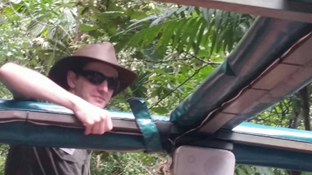水陸両用のアーミーダックを運転してくれたガイドさん。