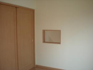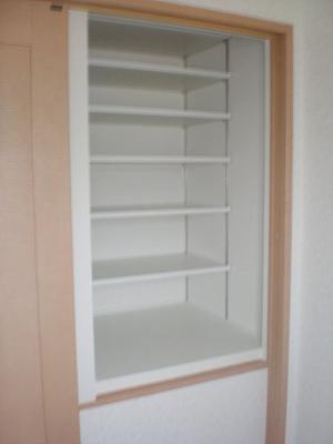 洗面脱衣室の扉を開けると、収納棚が扉で隠れます。