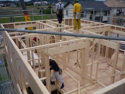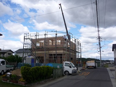 岡山市中区海吉のT様邸の上棟でした。 天気も良く、絶好の日和になりました。