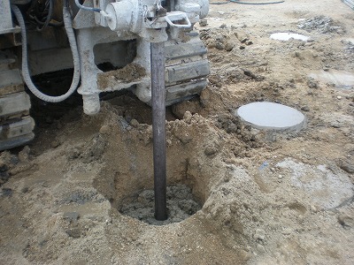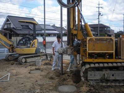 今回は500mmのセミパイルを9.5Mの深さまで32本打設しました。
