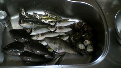アジやグレ沢山、カワハギが一匹、サザエが少々、そして鯛は・・・