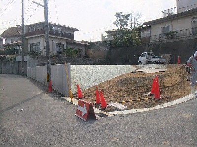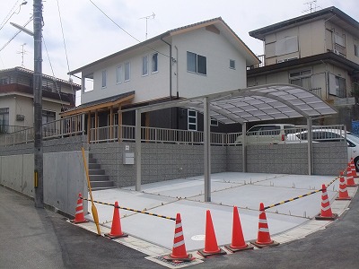 法面のある古い造成地を購入し、擁壁を施工し駐車場から階段で敷地に上がるように計画しました。