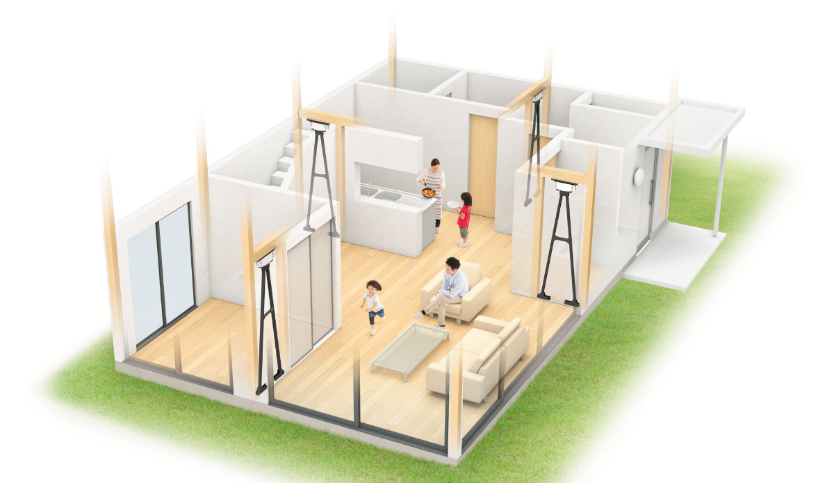 この機能のおかげで、突然の地震や、後から繰り返し発生する『余震』の揺れも吸収してくれて、家の損傷を軽減できるよ!
