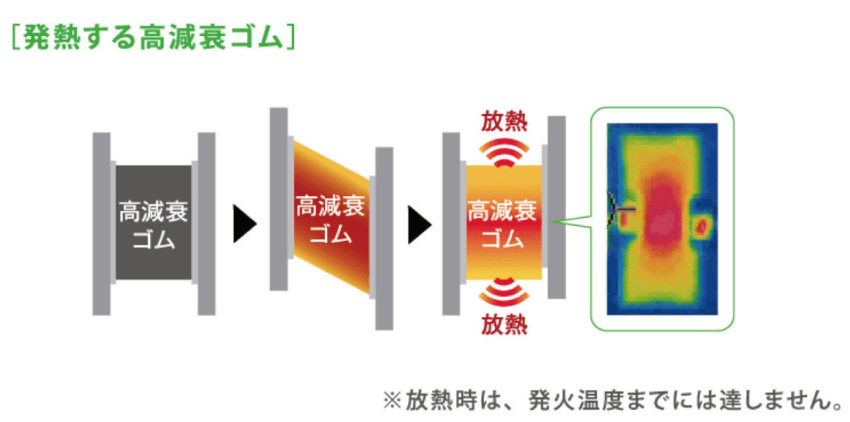 ゴムを使用しているから、地震が起きた時の振動エネルギーを熱エネルギーに変えることができて地震の揺れを効率良く吸収できるんだ。