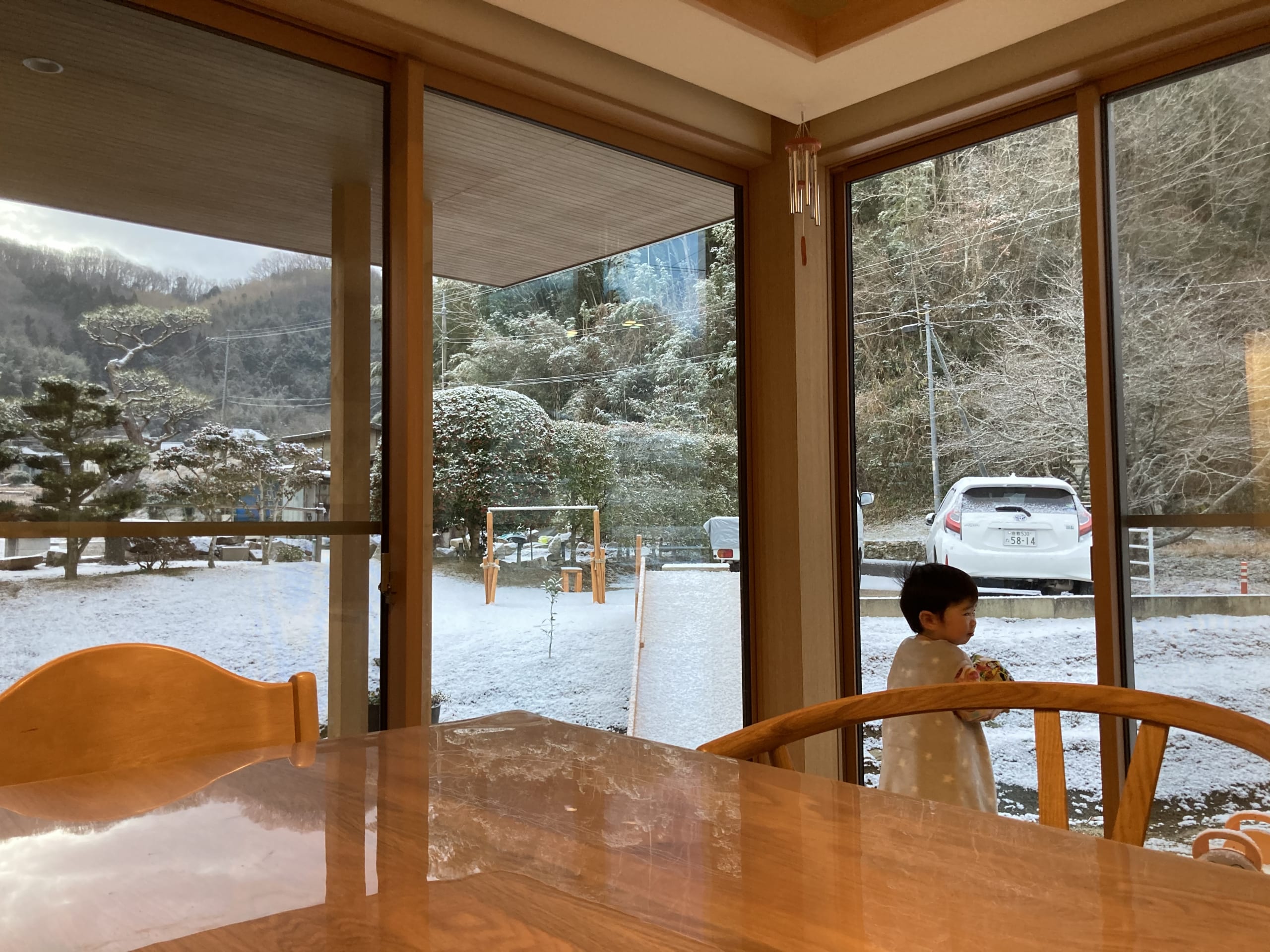 でも家の断熱性も高いおかげでかお家の中は寒くなくリビングから見える雪景色もなかなかのものであります。