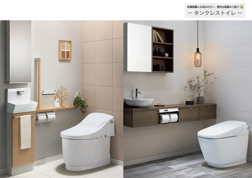 タンクレストイレはトイレ背面にタンクが無いタイプのトイレのことだよ。