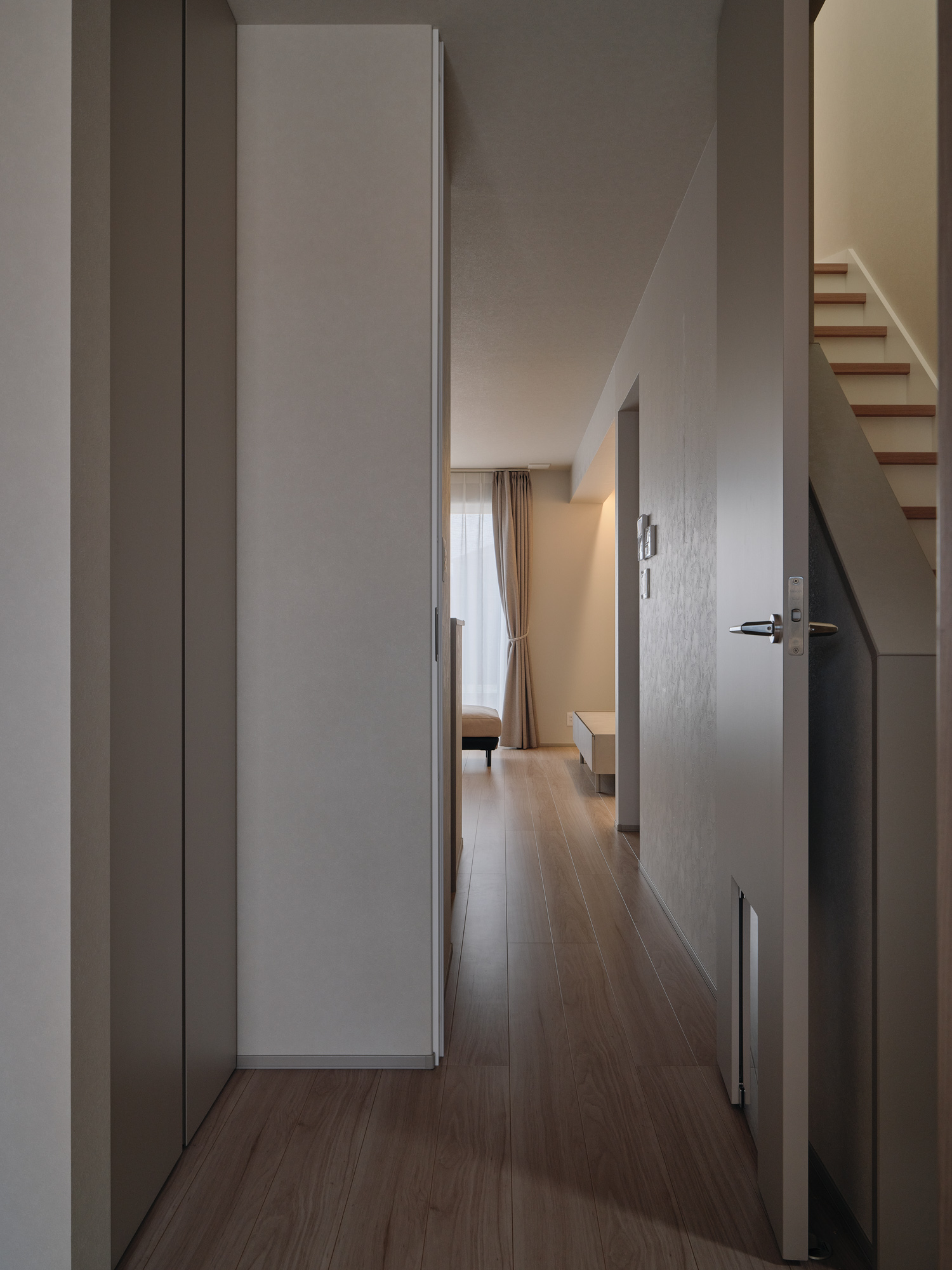 家族の一員であるペットが、家中を自由に、そして安全に駆け回れるよう、滑りにくさに特化した高機能な床材を採用しました。フローリングの美しい木目の風合いはそのままに、足腰への負担を軽減する表面加工を施すことで、関節のトラブルを予防。ペットにとっては歩きやすく、飼い主様にとっては掃除がしやすくキズにも強い、お互いが笑顔で過ごせるための「足元設計」を追求しています。