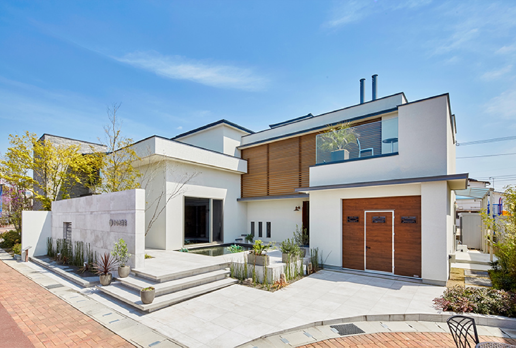 外壁に複数の建材を用いた「ひのき住宅の技術」の集大成。常にベストを引き出す為に、家具の選定からこだわり、配置はもちろん 照明が為す光の屈折から物の陰影までもを考えぬきました。 1つ1つのディテールをぜひご覧ください。