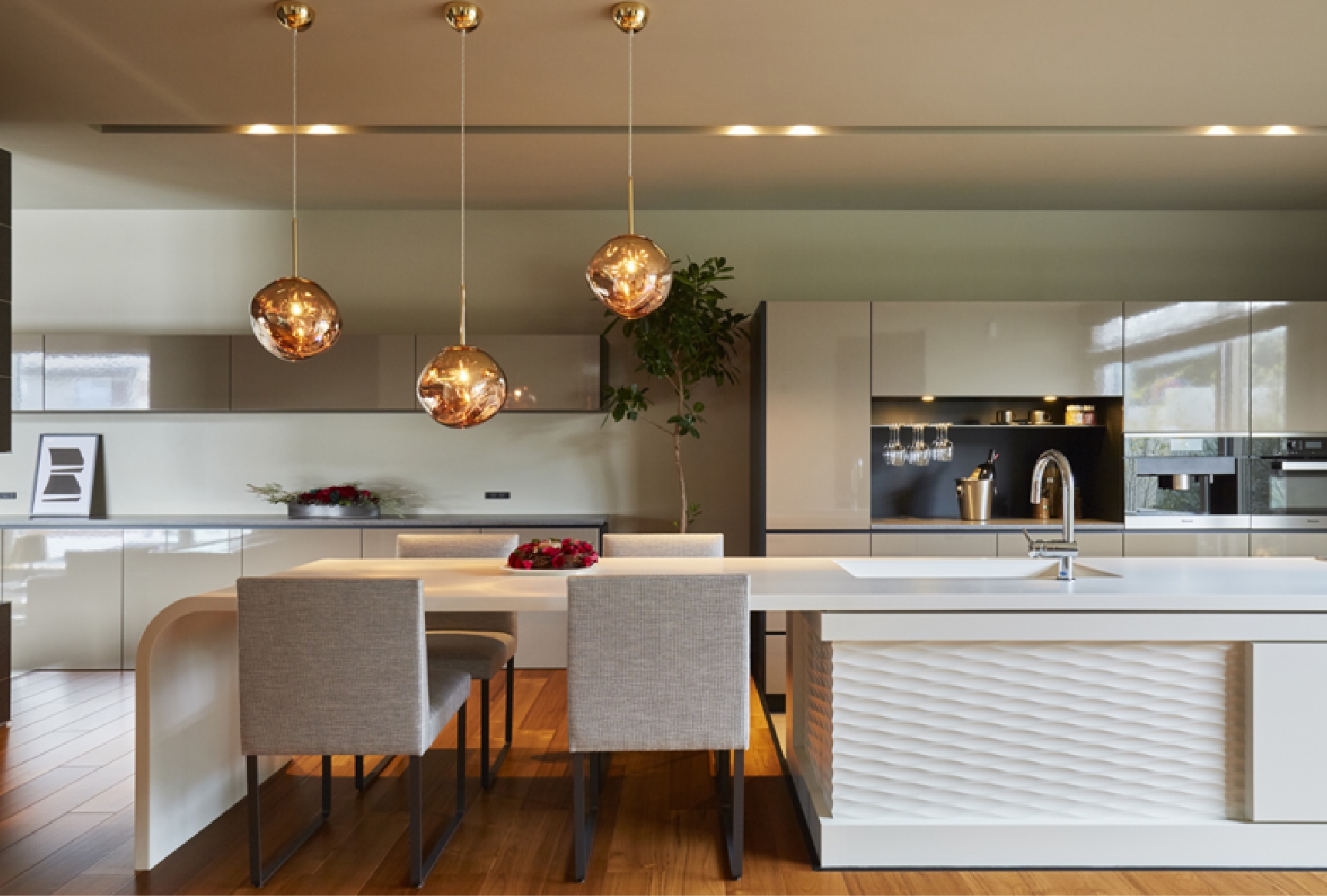 洗練されたダイニングキッチンはワンランク上の暮らしを演出してくれる。最新の設備を導入し、家事をする家族のことも考 えた優れた機能性には驚きと感動が。