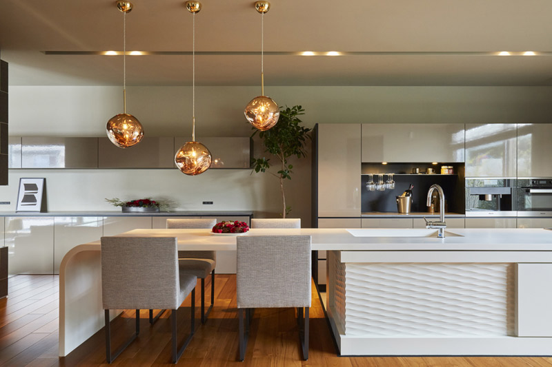 洗練されたダイニングキッチンはワンランク上の暮らしを演出してくれる。最新の設備を導入し、家事をする家族のことも考 えた優れた機能性には驚きと感動が。