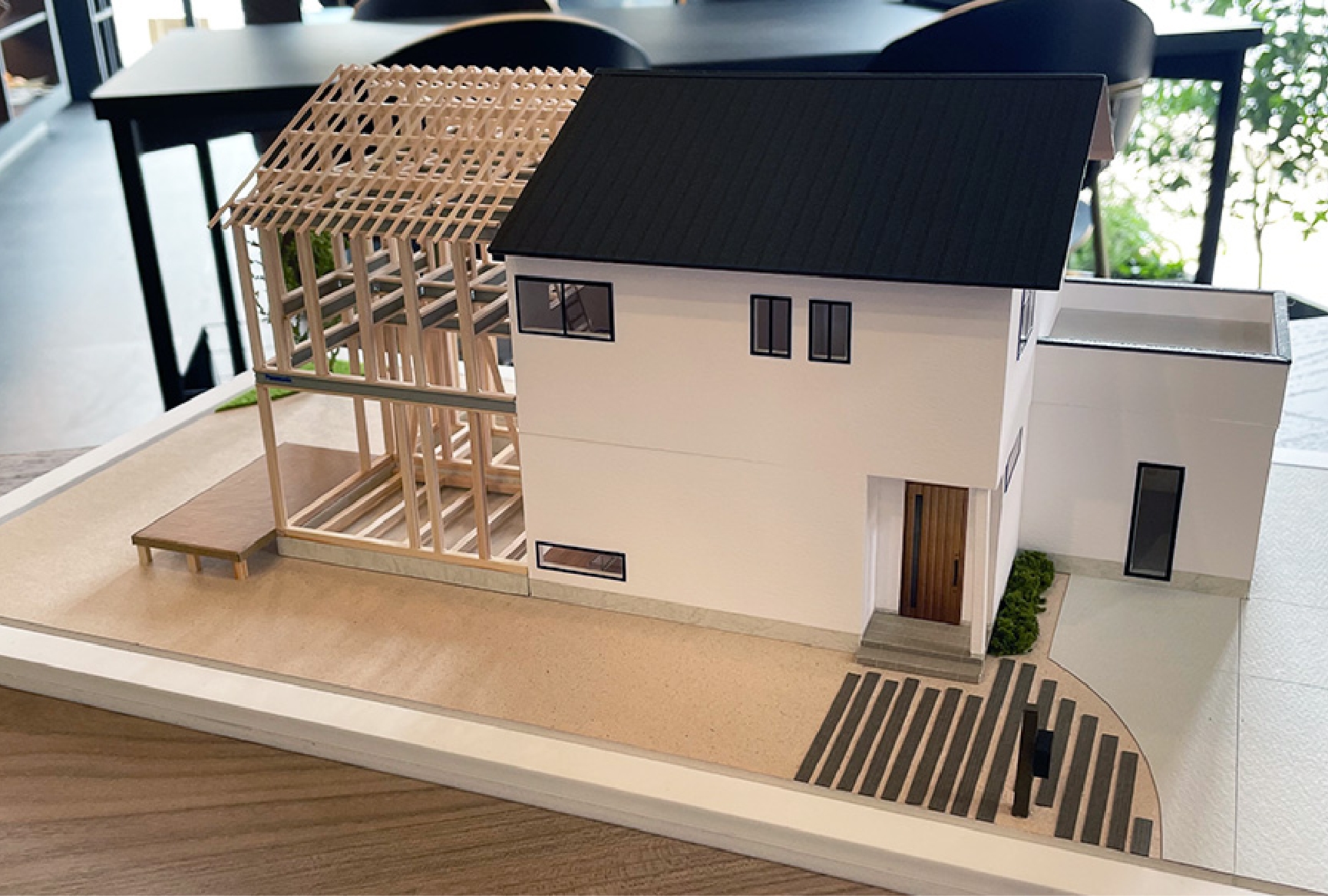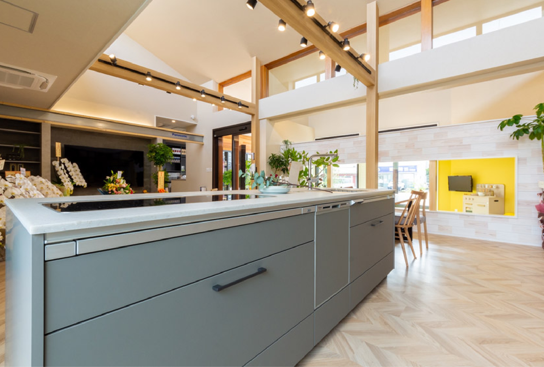 リアルサイズのキッチンやリビング・書斎コーナーの展示場でお家づくりのイメージが湧きやすい。