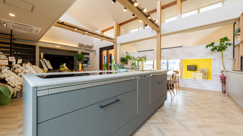 リアルサイズのキッチンやリビング・書斎コーナーの展示場でお家づくりのイメージが湧きやすい。