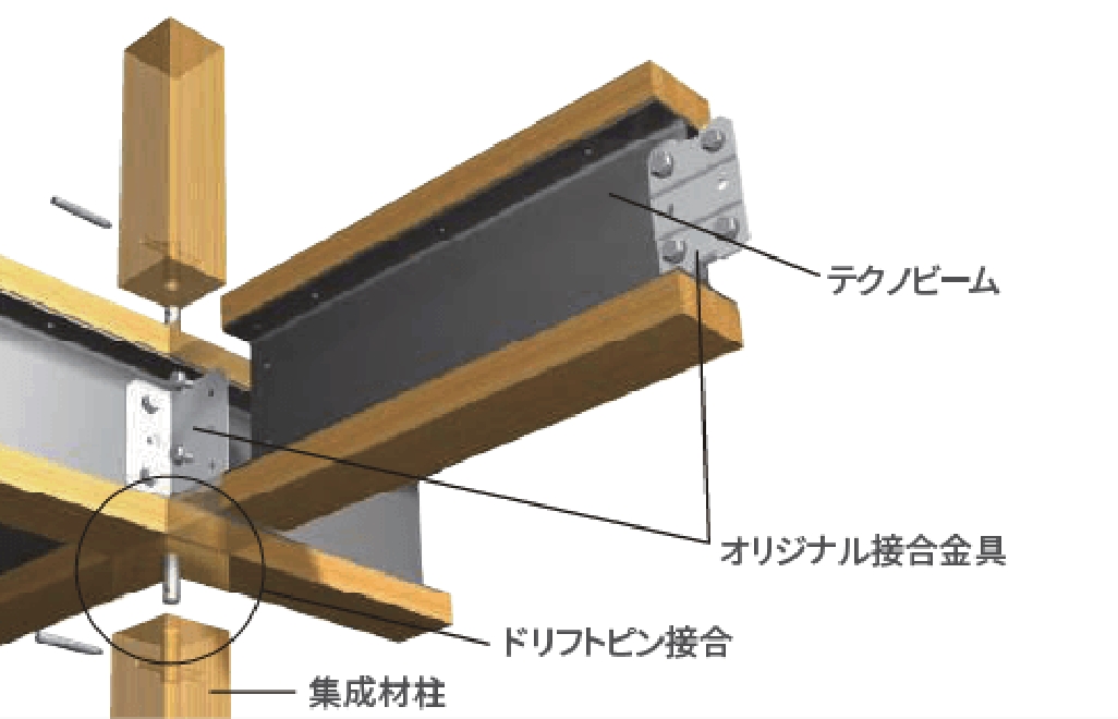 パナソニックが開発したテクノストラクチャーでは、家を支える大切な梁に木と鉄の複合梁「テクノビーム」を採用。