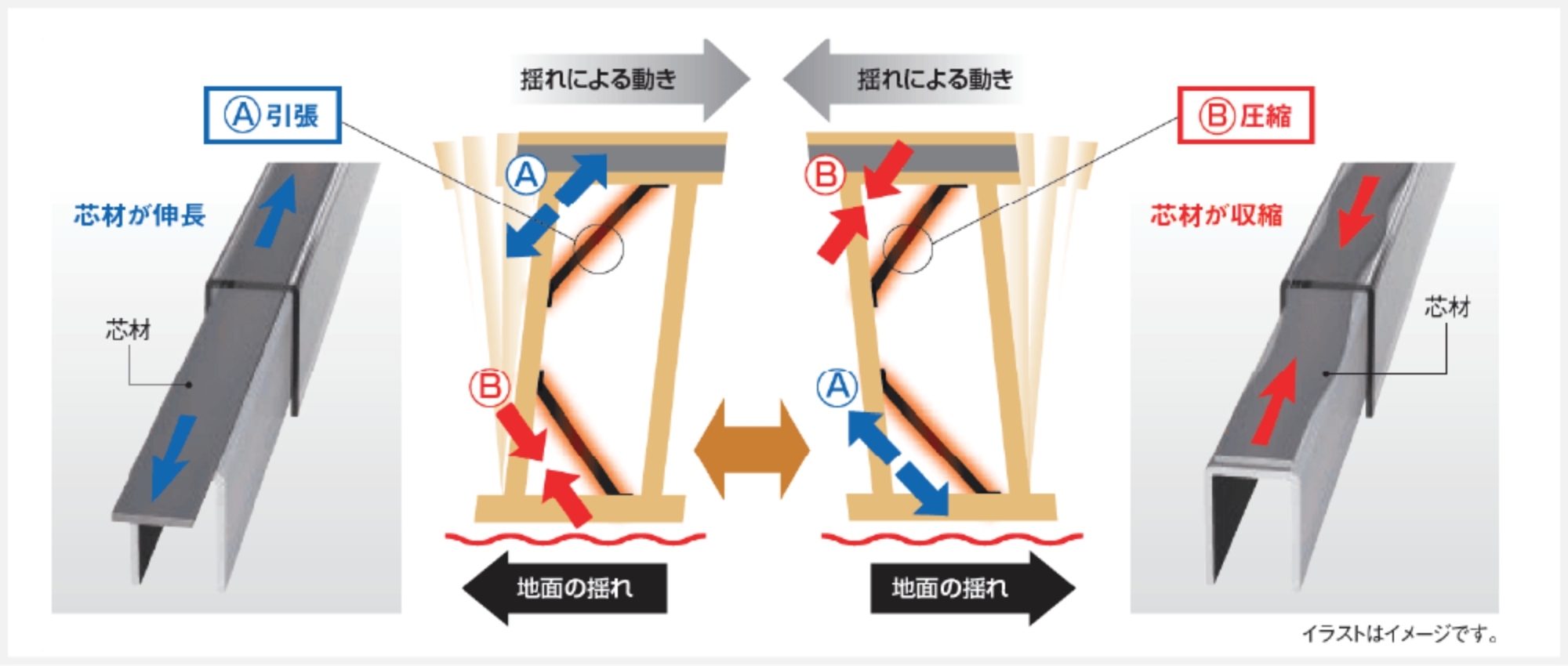 大地震に相当する負荷を100回以上繰り返しても制振効果が維持できるなど、繰り返しの地震にも効果を発揮します。