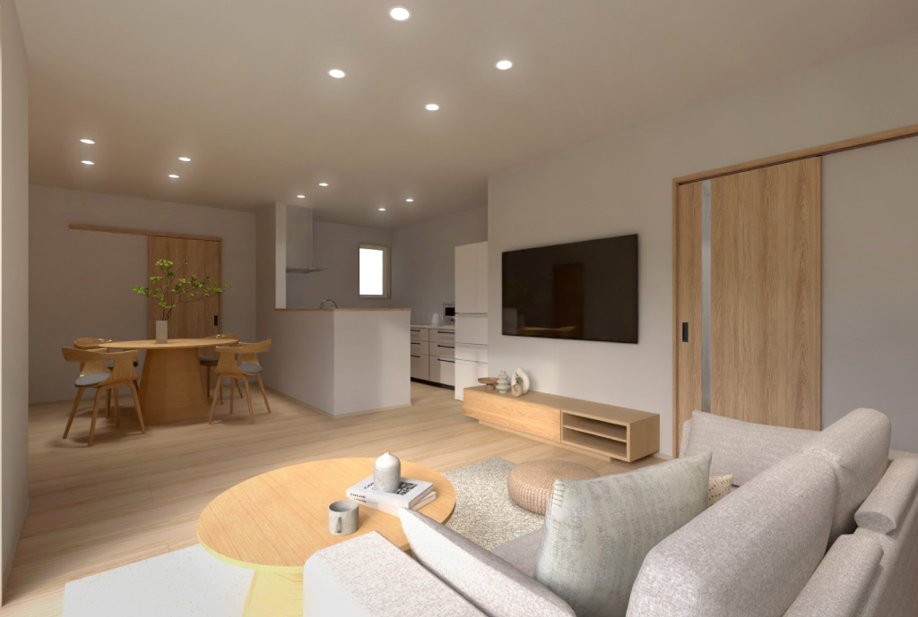 LDKはどこにいても自然と目線が合う家具配置を意識し、
