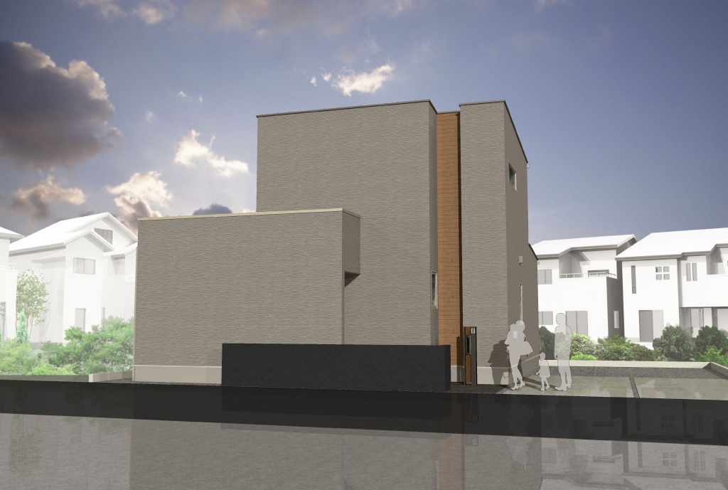 洗練されたモダンな外観に、木目の温かいアクセント。