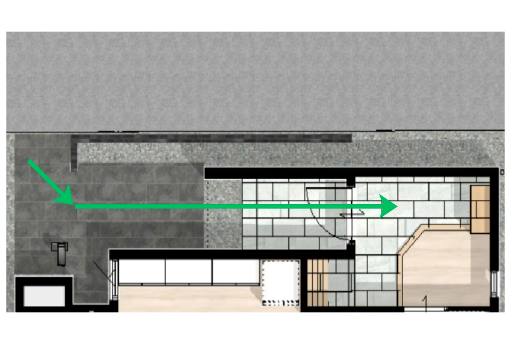 動線と空間構成で実現しています。