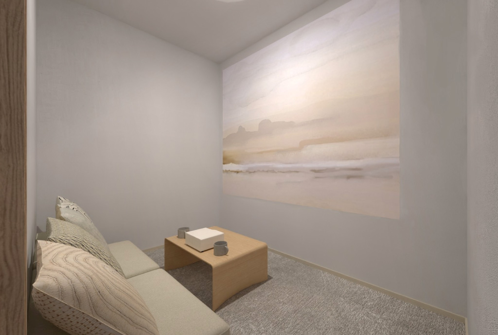 映像と音に集中できる、落ち着いた雰囲気の場所に整えました。