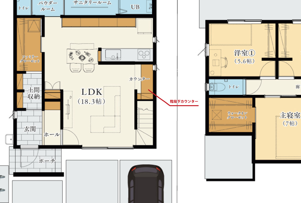 さらに1階にファミリークローゼットを設け、帰宅後の着替えや収納もスムーズです。