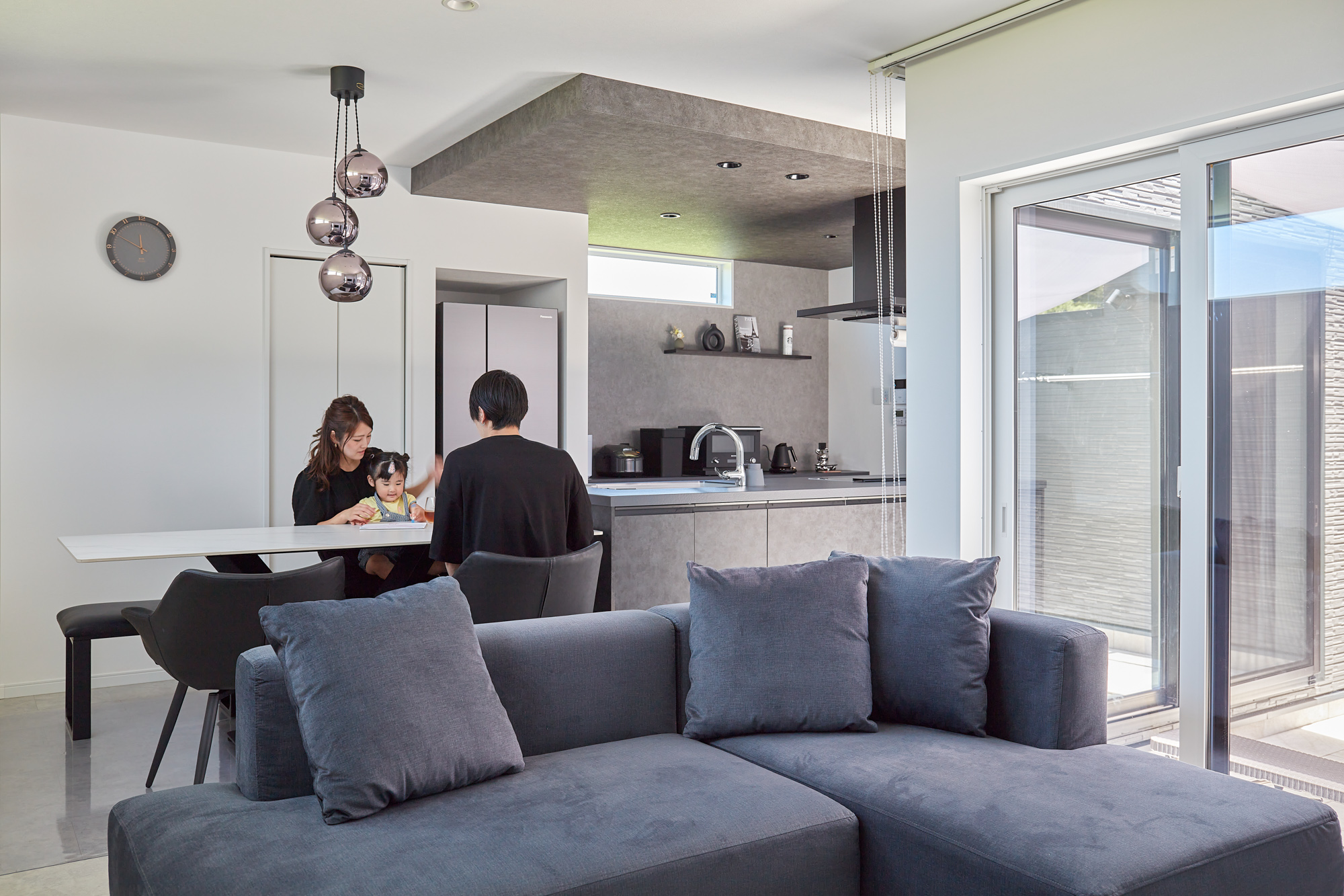一直線の家事動線と憧れのコートヤード。1年中どこにいても快適な暮らし