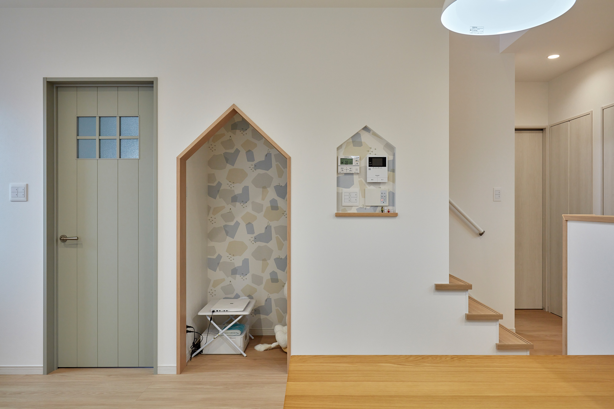 私たちの理想は、スタイリッシュさやホテルライクな雰囲気よりも、かわいらしさと落ち着きがある家でした 。特にムーミンの世界観や、赤いポスト、曲線が美しいRタレ壁、階段下の秘密基地のような空間など、遊び心のある提案を求めていました 。ひのき住宅さんは、そんな私たちの好みを存分に取り入れてくれると感じました 。単に要望を聞くだけでなく、私たちの意見を尊重しながら「プラスワン」の提案やアドバイスをくれたことがとても嬉しかったです 。担当の営業さんやコーディネーターさんとは、何でも言い合える心地よい関係性を築けたことも、大きな安心材料になりました 。