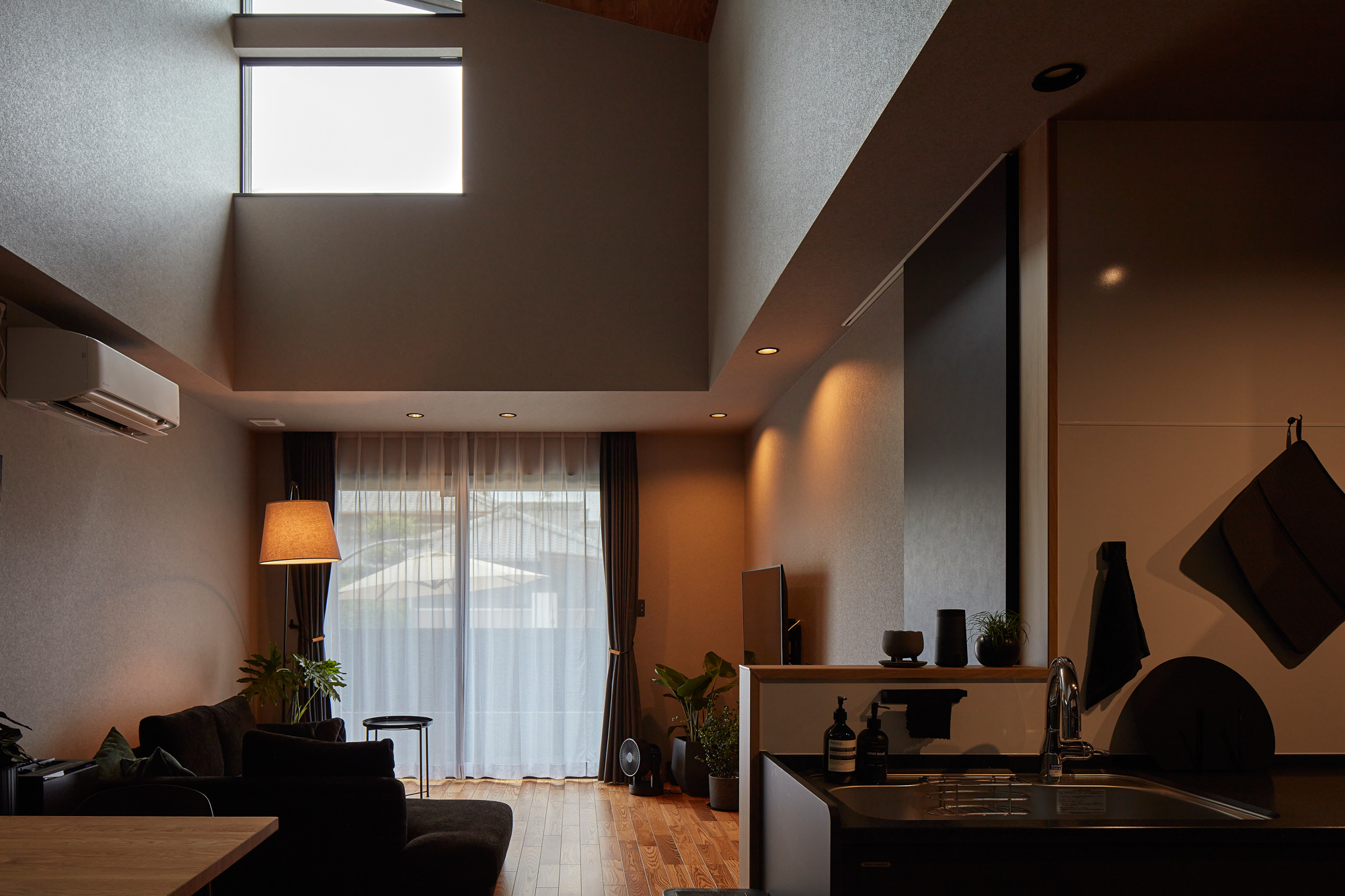 デザイン面では黒、グレー、木目をベースにした「シンプルモダン」にこだわり、家事動線の良さや、アウトドア用品をたっぷりしまえる広い土間も実現しました 。特にお気に入りなのは、天井を高くした開放感あふれるリビングです 。大きな窓や天窓、高窓からたっぷりと光が差し込み、毎朝とても清々しい気分で目覚めることができます 。住み心地も期待以上です。夏は涼しく冬は暖かく、性能の高さも実感しています 。夜は窓から月を眺めることができ、癒しのひとときを与えてくれます 。何より、庭で元気に走り回る2匹の愛犬たちの姿を眺める毎日は、本当に幸せです 。