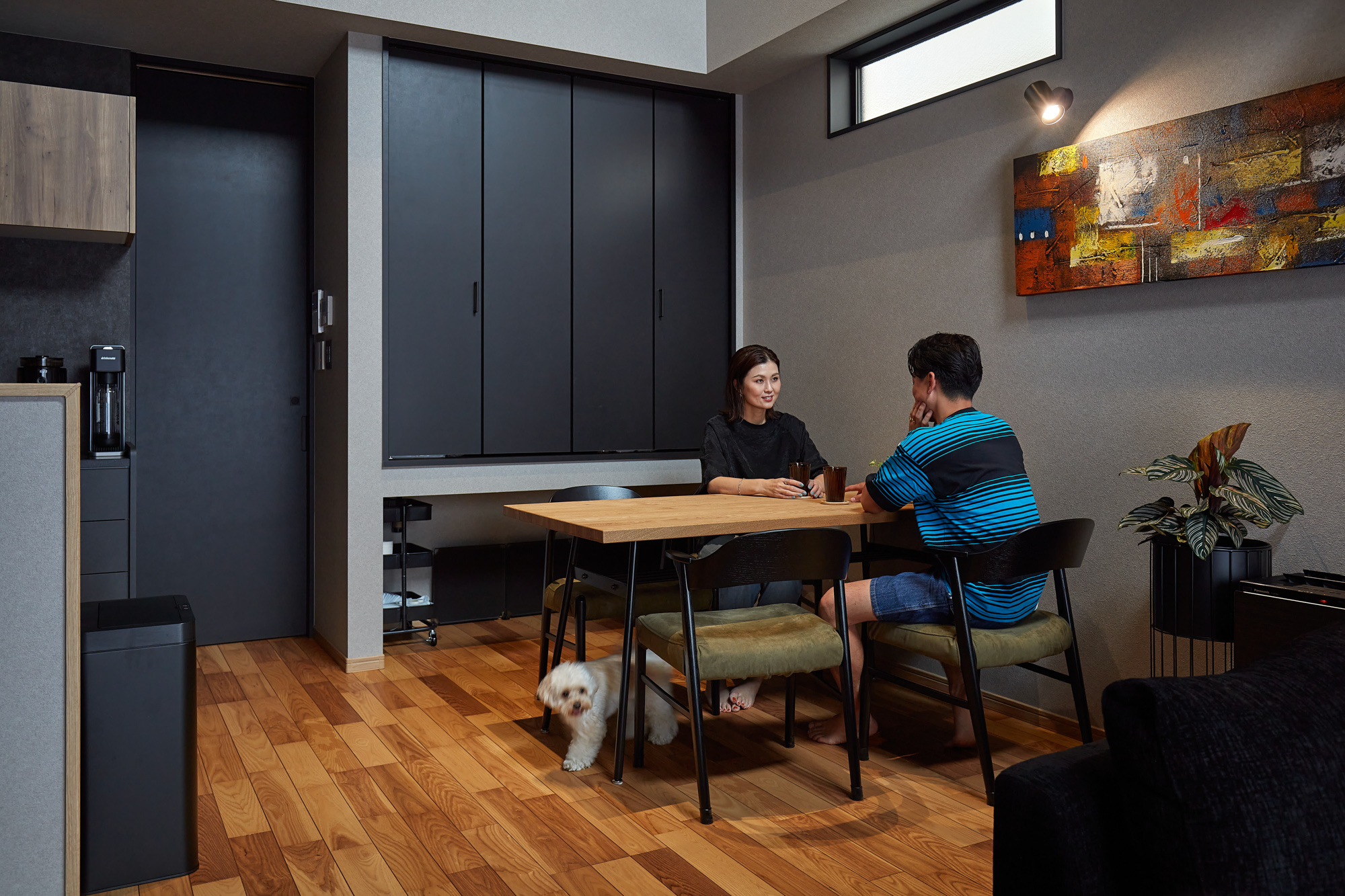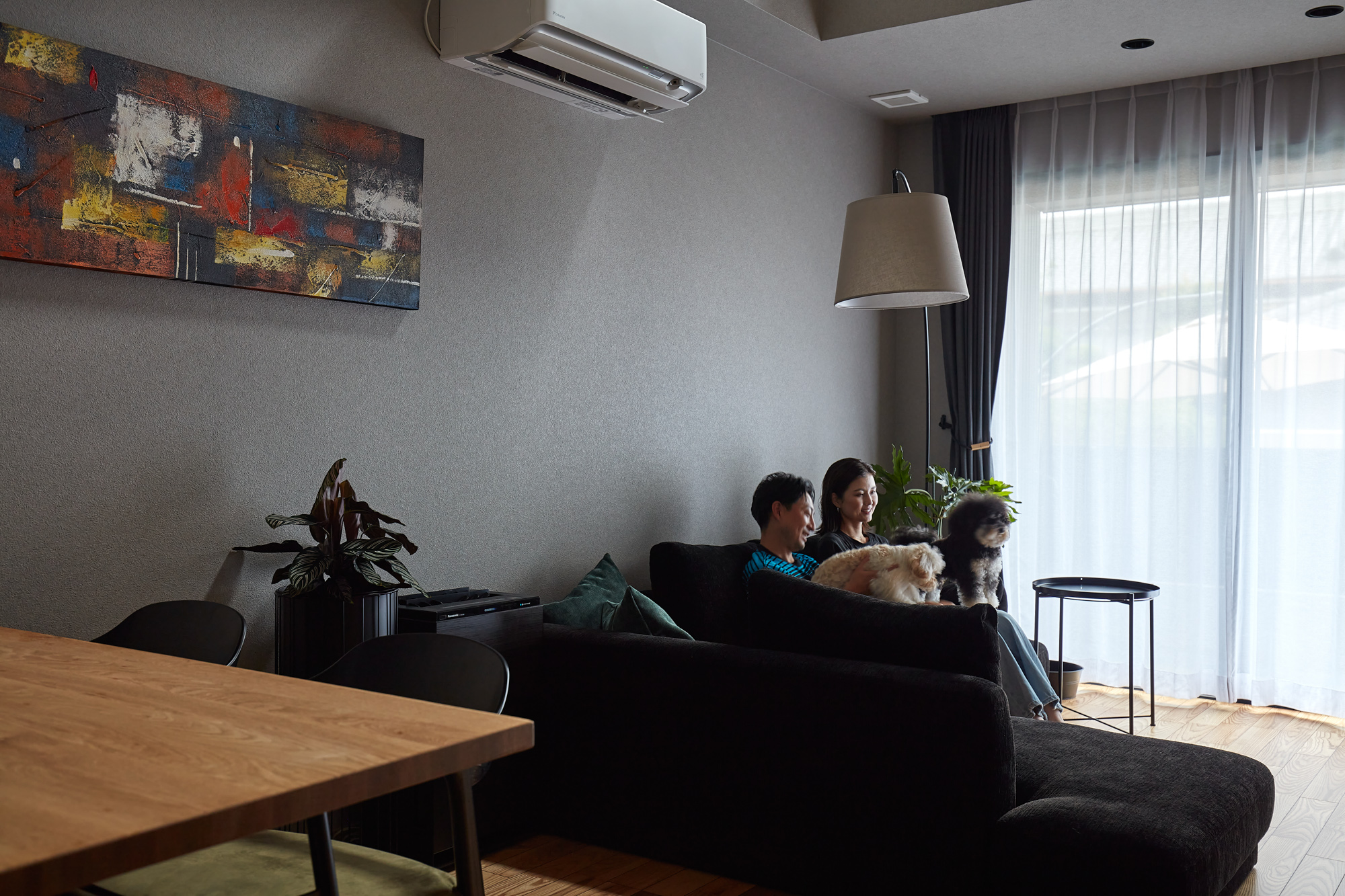 以前はマンションに住んでいましたが、2匹の愛犬を飼い始めたことが大きな転機になりました 。もっと広いお庭で、愛犬たちを思い切り遊ばせてあげたいと思っていたけれどマンション特有の悩みもありました。日々の買い物や愛犬との散歩の際、部屋から外に出るまでの動線が不便に感じたり、お隣への騒音に気を遣ってしまったり…… 。家族が心からくつろげる時間と、愛犬たちがストレスなく走り回れる開放的な空間を求めて、自分たちの家づくりを決意しました 。