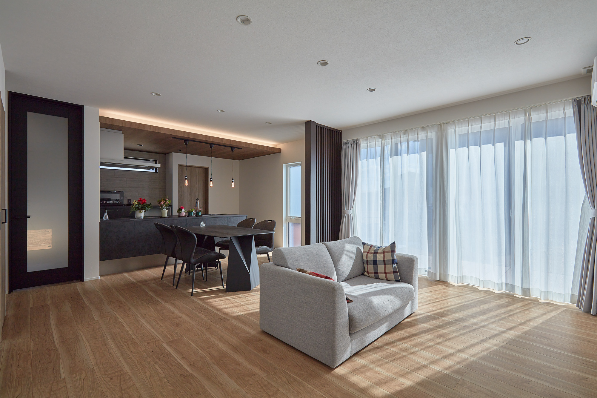 家づくりのきっかけは結婚でした 。以前住んでいた1LDKの賃貸アパートでは、空間全体の狭さが不満で、日々の生活の中で夫婦の動線が重なってしまうことに悩んでいました 。特に台所の狭さは、料理をするたびにプチストレスを感じるほど 。新しい生活を始めるにあたって、家族でリラックスできる、まるでホテルのような上質な空間を手に入れたいと考えました 。